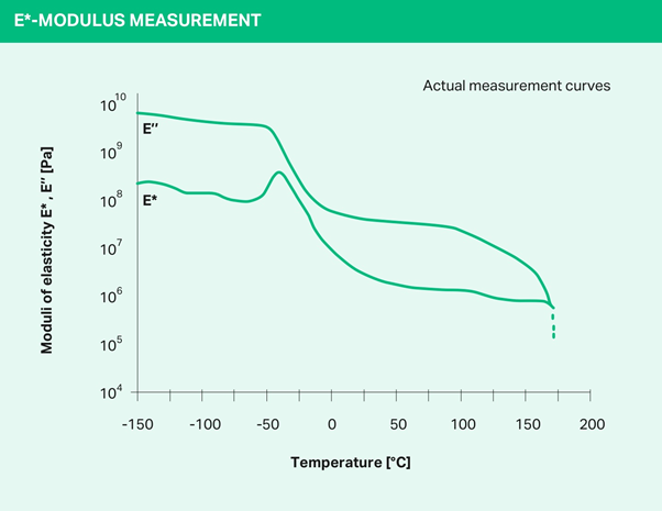 Figure 3 shows the modulus for a commercially available TPU. Measurements were carried out using forced oscillations at a constant measurement frequency of 1 Hz at different temperatures.
