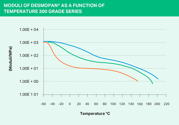 Moduli of Desmopan® as a function of temperature for 300 series grades
