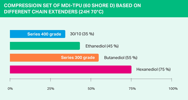 Compression set of MDI-TPU (60 Shore D) based on different chain extenders