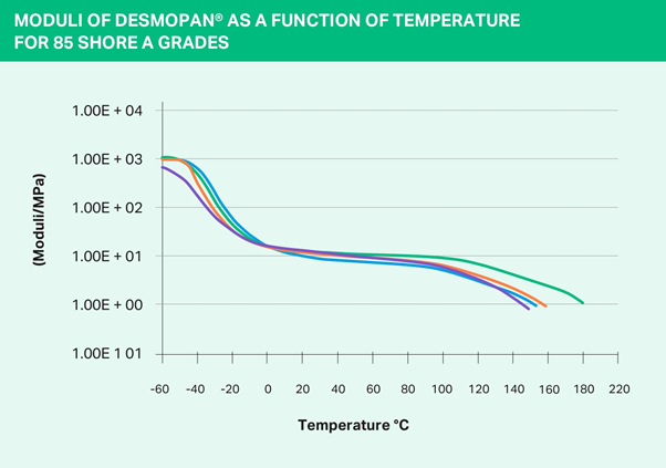 Moduli of Desmopan® as a function of temperature for 85 Shore A grades