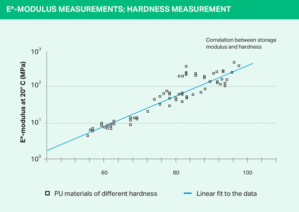 Fig. 5 Correlation between moduli of elasticity and Shore A hardness